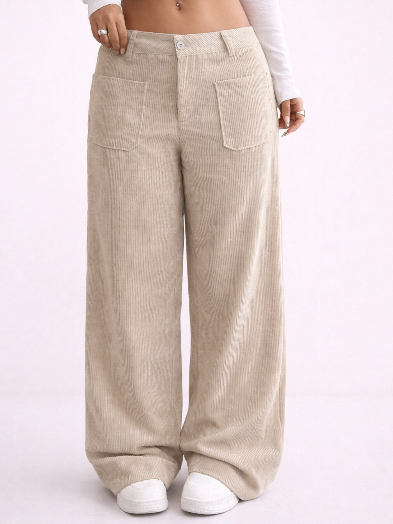 Classic and chic, these pants are cut from plush stretch corduroy with a low waist silhouette and floor-sweeping wide legs.